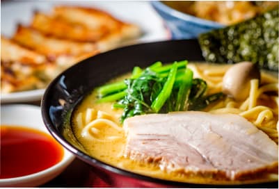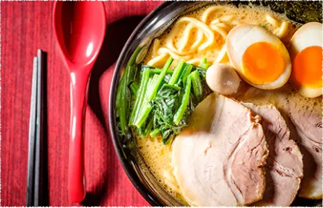 横浜家系ラーメンは、1974年以降に神奈川県横浜市で生まれた豚骨醤油ベースの中太麺を特徴とするラーメン。元々屋号に「〜家」とつける店が多かったことから、家系(いえけい)と呼ばれるようになりました。豚骨や鶏ガラから取ったダシに醤油のタレを混ぜた「豚骨醤油ベース」のスープに、モチモチとした独特の食感を持つストレートの中太麺。ほうれん草やチャーシュー、海苔をトッピングの基本とし、味の濃さやスープの脂の量、麺のゆで加減の調整、トッピングの追加などによるアレンジが可能であることなどを特徴としています。
